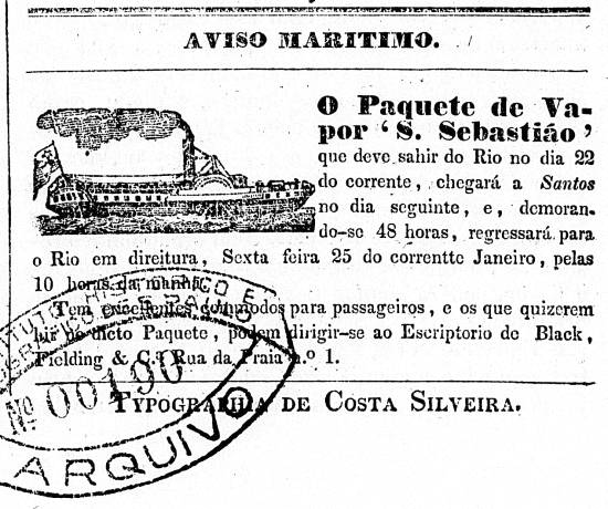 Black Fielding & Cia. (escritório na Rua da Praia, nº 1) - paquete de vapor S. Sebastião