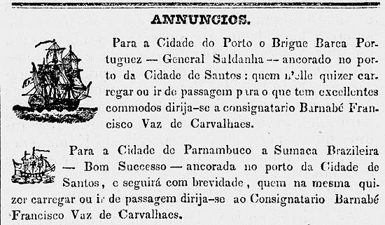 Brigue e sumaca ancorados em Santos, recebendo cargas
