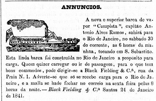 Barca a vapor Campista - agentes: Black Fielding & Cia.