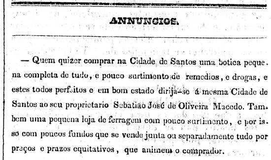 Botica à venda, por Sebastião José de Oliveira Macedo