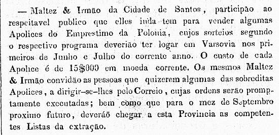 Maltez & Irmão vendem Apólices do Empréstimo da Polônia
