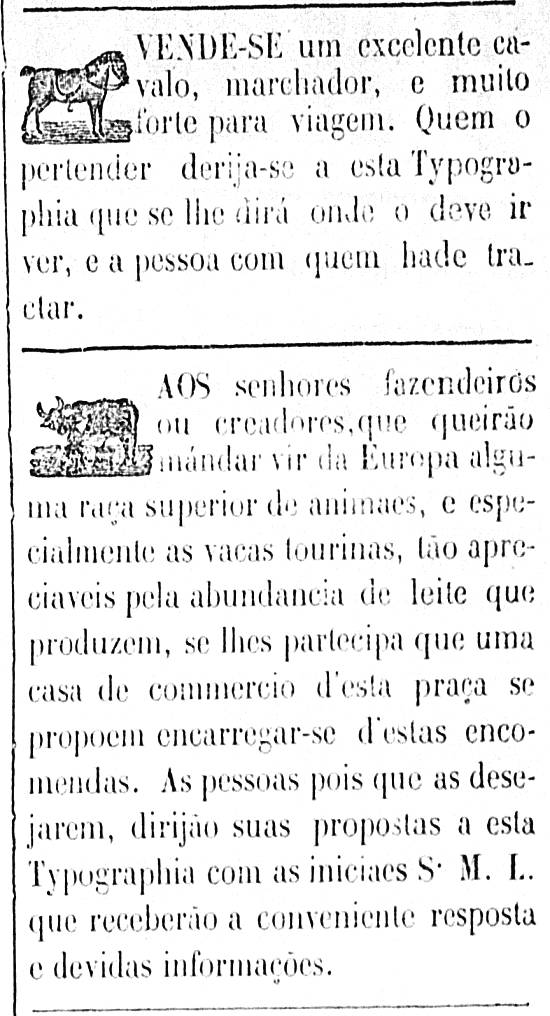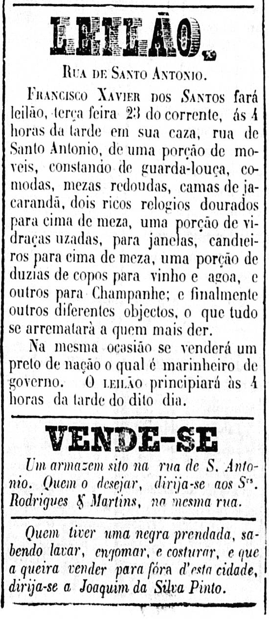 Anúncios classificados - Leilão de móveis e escravo, venda de armazém, procura-se criada