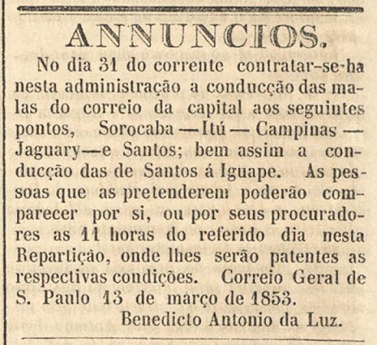 16 de março de 1853, página 4 (acervo do Arquivo do Estado de São Paulo)