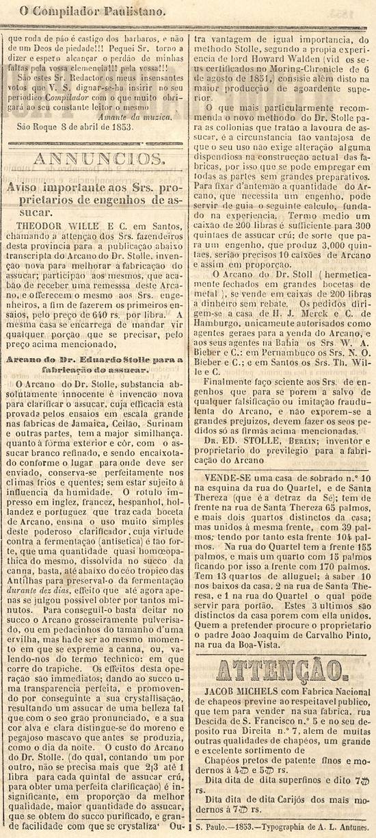 abril de 1853, página 4 (acervo do Arquivo do Estado de São Paulo)