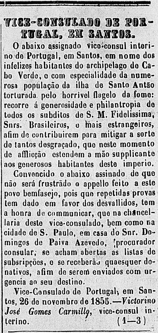 Vice-Consulado de Portugal em Santos - Contribuição pública para a ilha de Cabo Verde