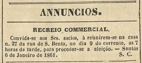 Publicado no jornal Revista Commercial, de Santos, em 8 de janeiro de 1861, edição 36, página 4
