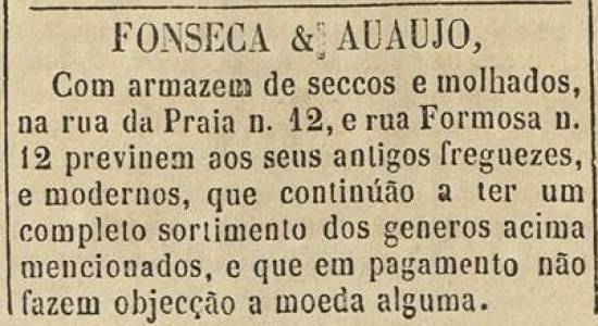 Fonseca & Araujjo ("Auaujo"), armazém nas antigasRua da Praia, 12 e Rua Formosa, 12