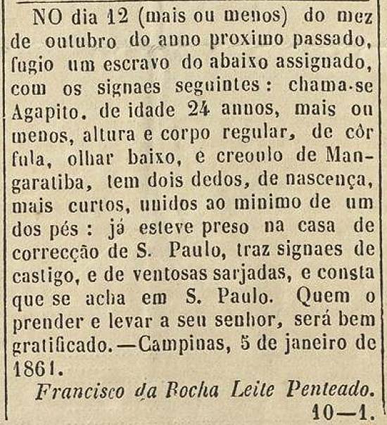 Escravo fugido em Campinas
