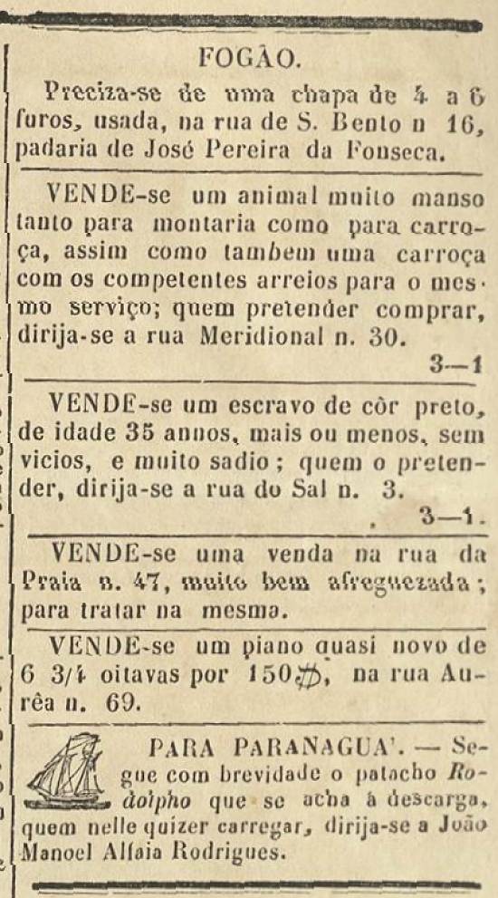 Publicado no jornal Revista Commercial, de Santos, em 11 de janeiro de 1861, edição 36, página 4