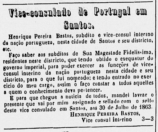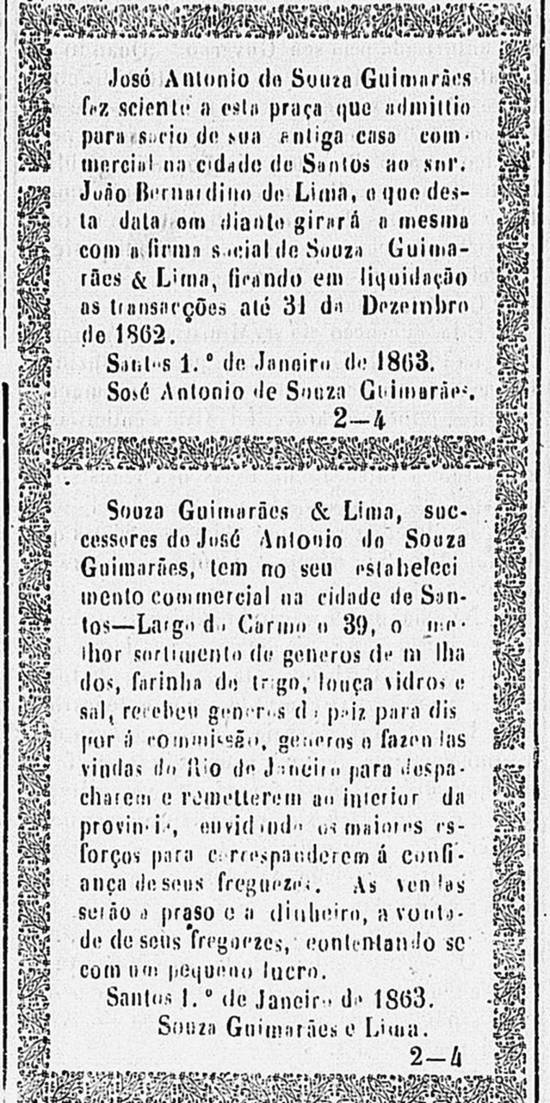 Publicado no jornal Correio Paulistano, da capital paulista, em 8 de janeiro de 1863, página 4