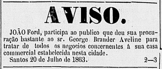 João Ford avisa dar procuração a George Brander Aveline para tratar dos negócios em Santos