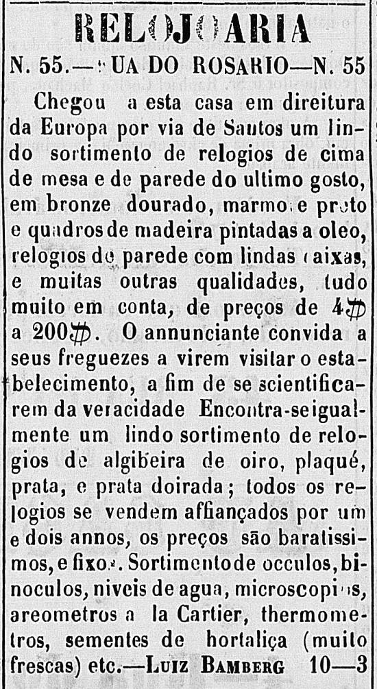 Relógios da Europa chegados a S. Paulo via Santos