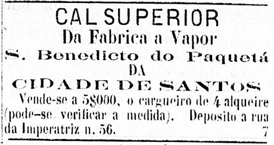 Cal da Fábrica a Vapor S. Benedicto do Paquetá da Cidade de Santos