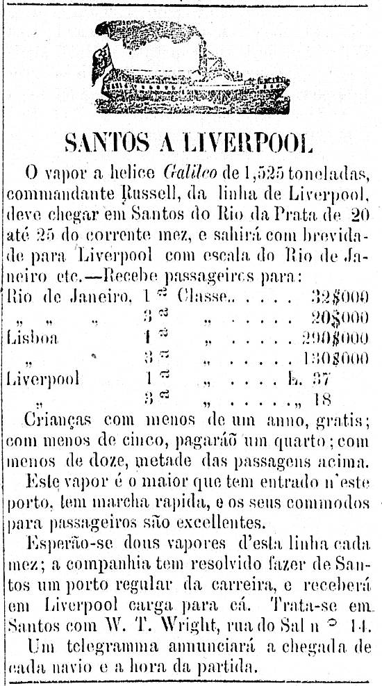 Vapor a hélice Galileo - agentes: W. t. Wright, em Santos