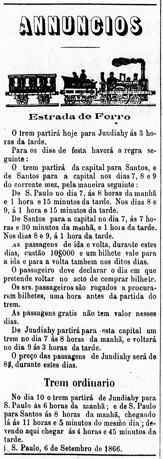 Publicado no jornal paulistano Diario de S. Paulo, no número 322, de quinta-feira, 6 de setembro de 1866, página 3 (acervo Memória Biblioteca Nacional Digital)