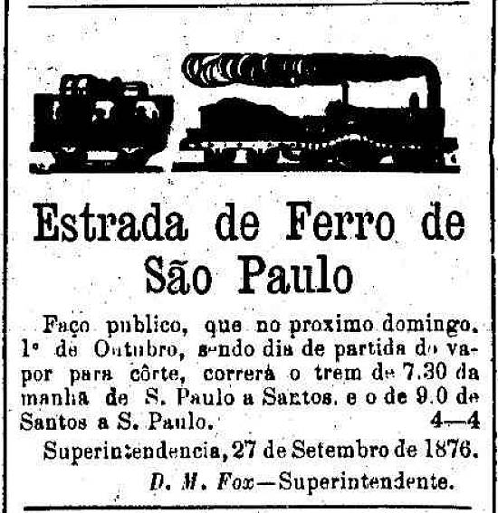 Estrada de Ferro de São Paulo - trens entre S. Paulo e Santos
