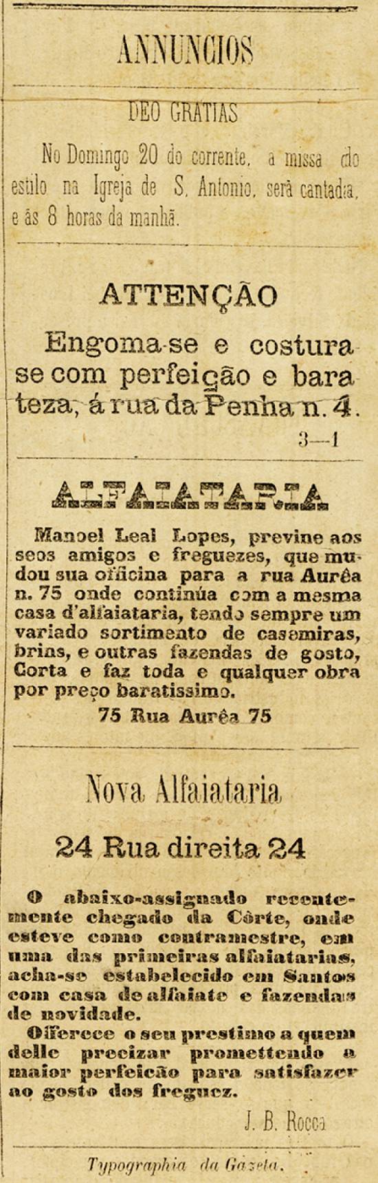 Publicado no jornal Gazeta de Santos em 19 de agosto de 1876 (Ano I, Número I), página 4
