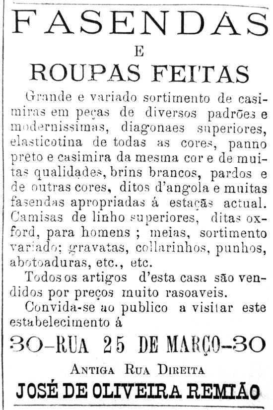 Fazendas e roupas feitas, loja de José de Oliveira Remião