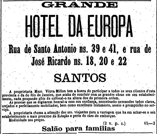 Grande Hotel da Europa, de madame Viúva Millon - anúncio de conclusão de obras