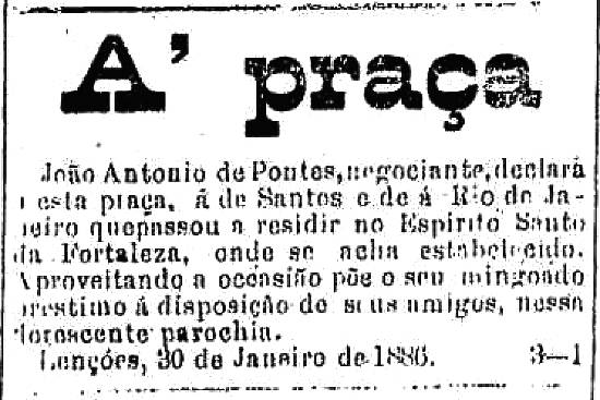 Publicado no jornal A Província de São Paulo em 25 de fevereiro de 1886, pág. 4 (Acervo