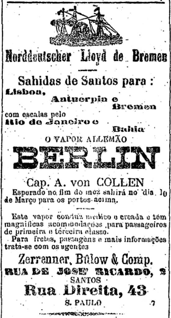 Zerrenner, Bülow & Comp. - agentes de Norddeutscher Lloyd de Bremen