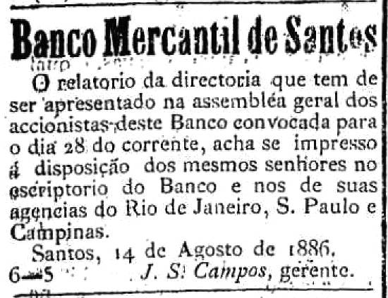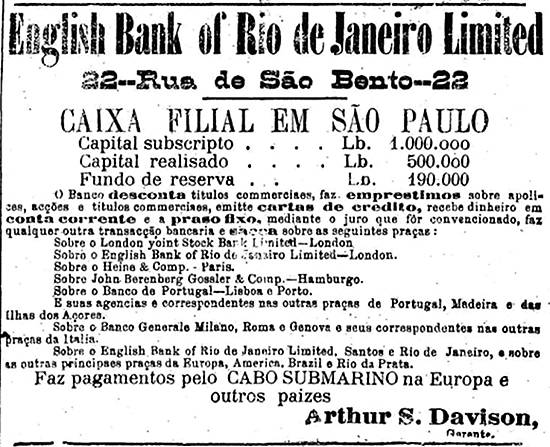 English Bank of Rio de Janeiro Limited - caixa filial em São Paulo, operando com praça de Santos