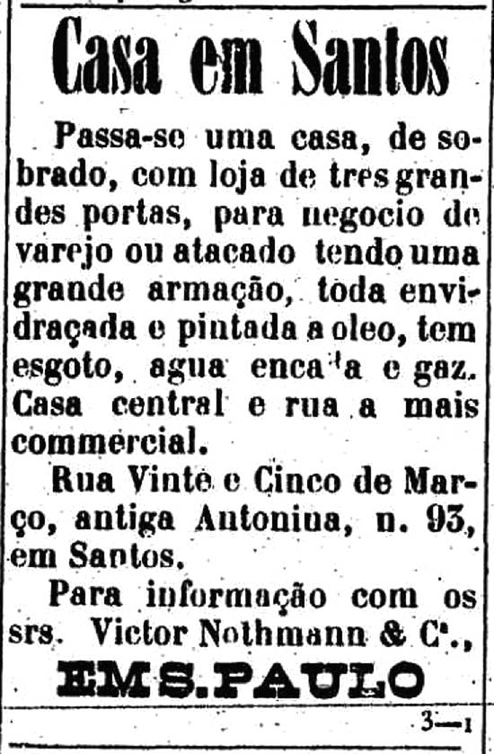 Victor Nothmann & Cia. - Vende-se casa em Santos