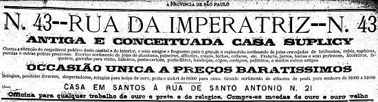 Casa Suplicy (jóias, relógios, artigos para casa e escritório etc.) - filial em Santos