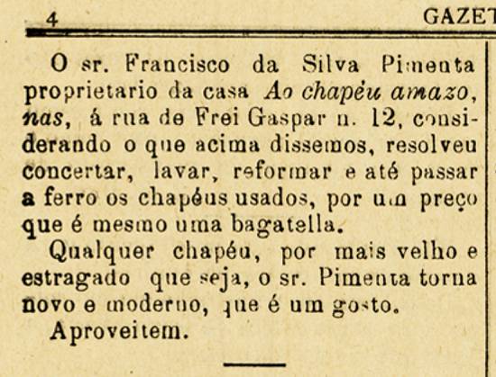Publicado no jornal Gazetinha (Ano I, mês 2, número 4), em 26 de setembro de 1886, página 4