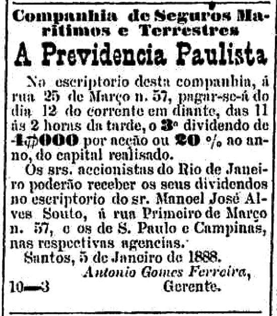 Companhia de Seguros Marítimos e Terrestres A Previdência Paulista, estabelecida em Santos