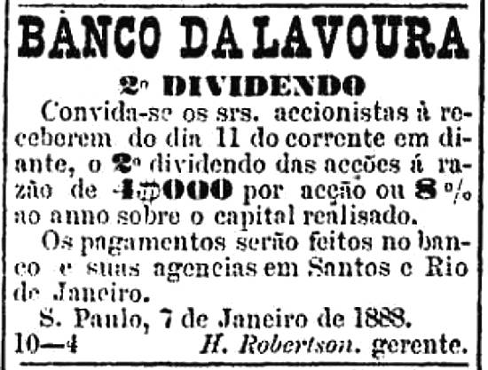 Banco da Lavoura - distribuição de dividendos, nas agências de Santos e Rio de Janeiro