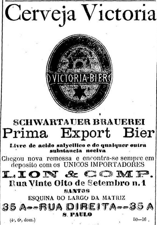 Lion & Comp., importadores da cerveja Victoria - Schwartauer Brauerei - Prima Export Bier