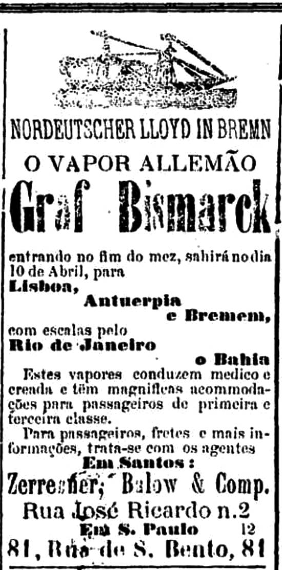 Zerrenner, Bülow & Comp., agentes de Nordeutscher Lloyd in Bremen, Alemanha