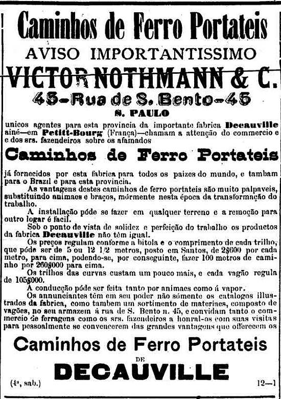 Victor Nothmann & C. - Caminhos de Ferro Portáteis de Decauville, material posto em Santos
