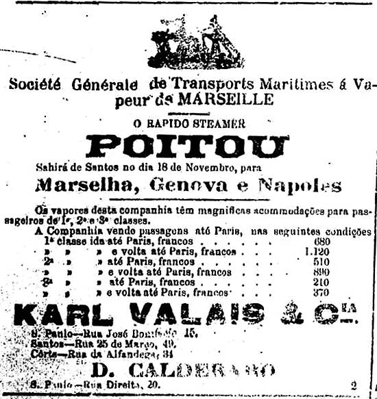 Karl Valais & Cia. - agentes de Société Générale de Transports Maritimes á Vapeur de Marseille