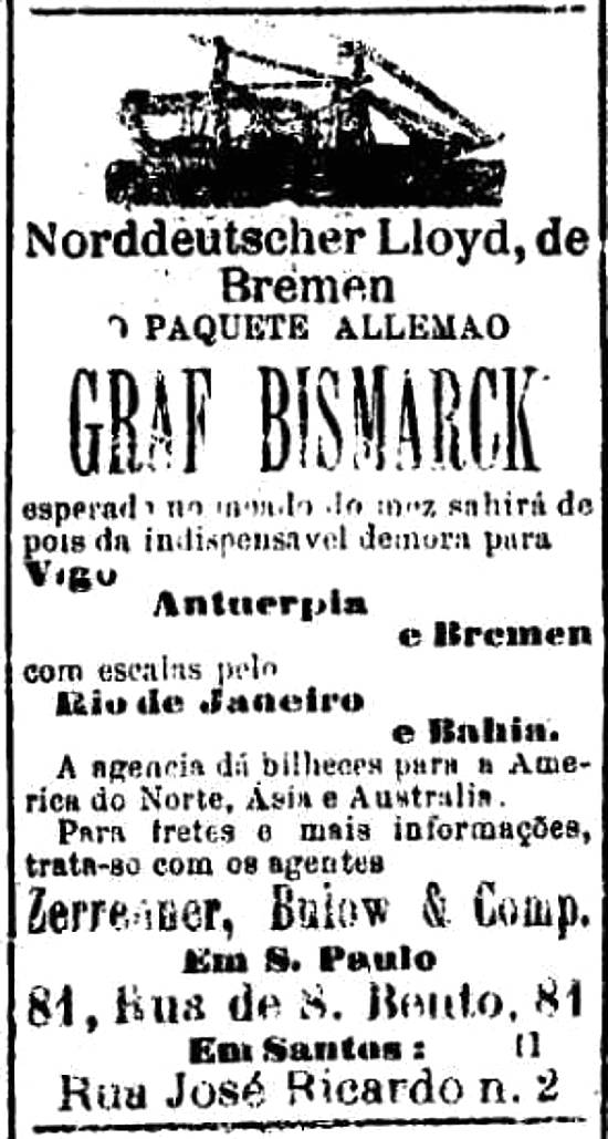 Zerrenner, Bülow & Comp., agentes de Norddeutscher Lloyd, de Bremen (Alemanha)