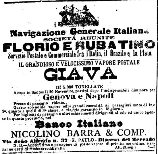 Navigazione Generale Italiana Societá Reunite Florio e Rubatino - navio Giava escala em