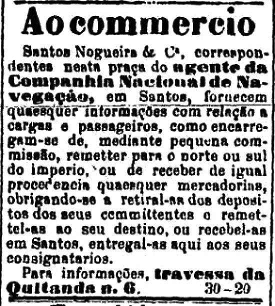 Santos Nogueira & Cia., correspondentes do agente em Santos da Cia. Nacional de Navegação