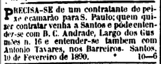Precisa-se de contratante de peixe/camarão, em Santos com B. C. Andrade e Antonio Tavares