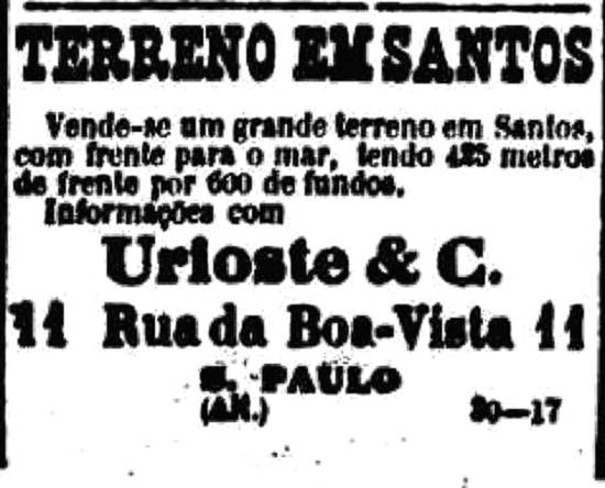 Urioste & C. vende terreno em Santos, com frente para o mar