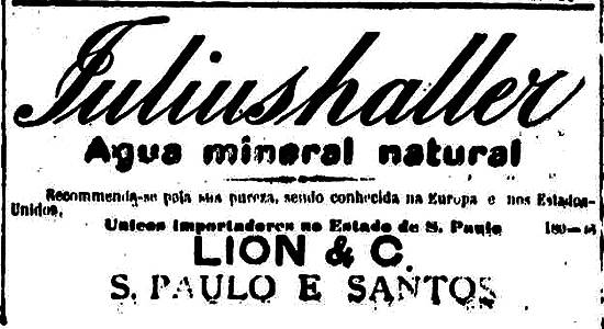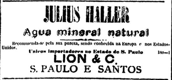 Lion C. - importadora em Santos e S. Paulo de água mineral natural Julius Haller