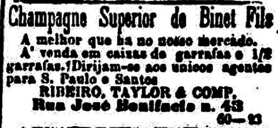 Ribeiro, Taylor & Comp. - agentes em Santos e S. Paulo da Champagne Superior de Binet Fils
