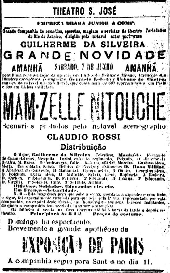 Empreza Braga Jr. & Comp. -peça MamZelle Nitouche segue do Teatro S. José para Santos