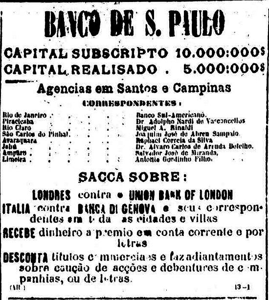 Banco de S. Paulo, com agentes em Santos e Campinas