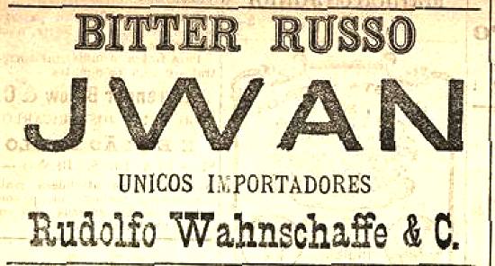 Bitter russo Jwan tem como únicos importadores a firma Rudolfo Wahnschaffe & Comp. Publicado no jornal Diário de Santos, em 29 de julho de 1890, página 4 Imagem: Hemeroteca da Biblioteca Nacional - Rio de Janeiro/RJ