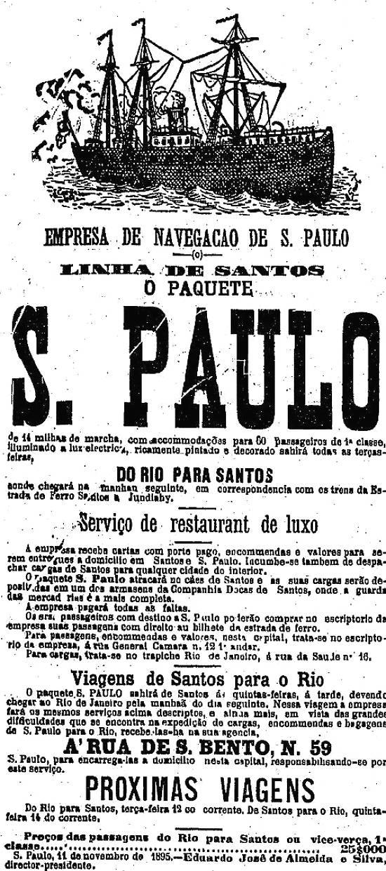 Empresa de Navegação de São Paulo - navio São Paulo na linha marítima Santos-Rio de Janeiro