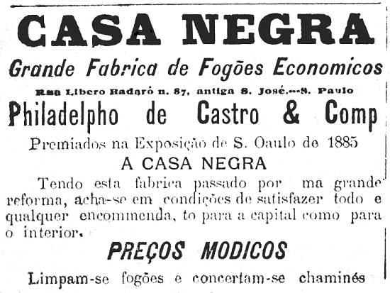 Casa Negra - Grande Fábrica de Fogões Econômicos, de Philadelpho de Castro & Comp., atende encomendas na capital e no interior paulista