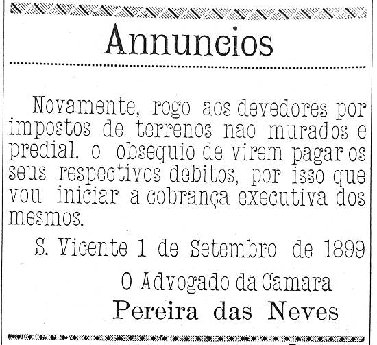 Advogado da Câmara de S. Vicente, Pereira das Neves