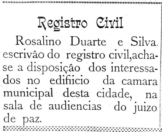 Registro Civil - escrivão Rosalino Duarte e Silva