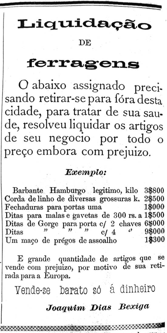 Liquidação de ferragens, de Joaquim Dias Bexiga